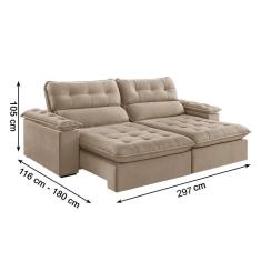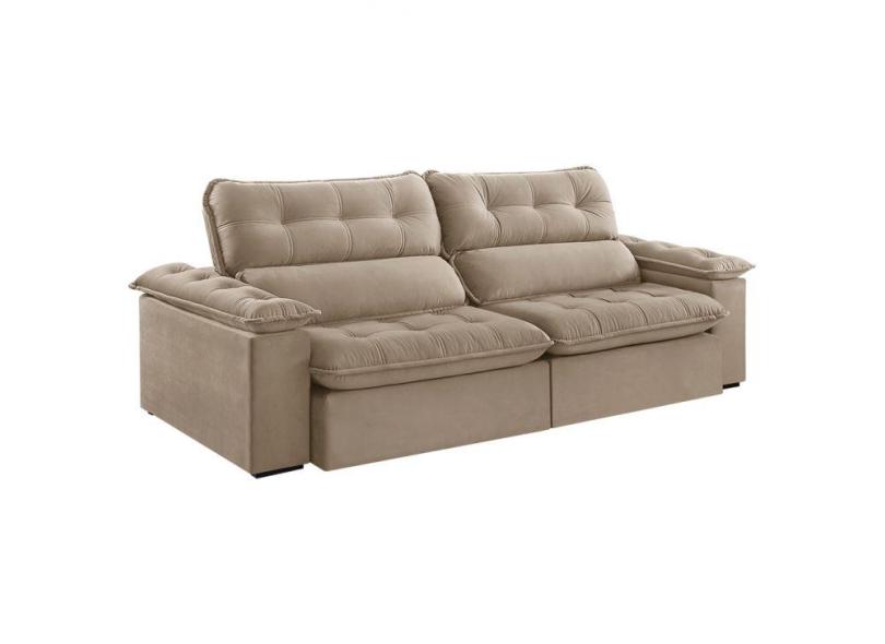 Sofá 5 Lugares Retrátil e Reclinável Jobi Veludo Bege Natural 297 cm