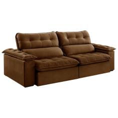 Sofá 5 Lugares Retrátil e Reclinável Jobi Veludo Marrom 297 cm
