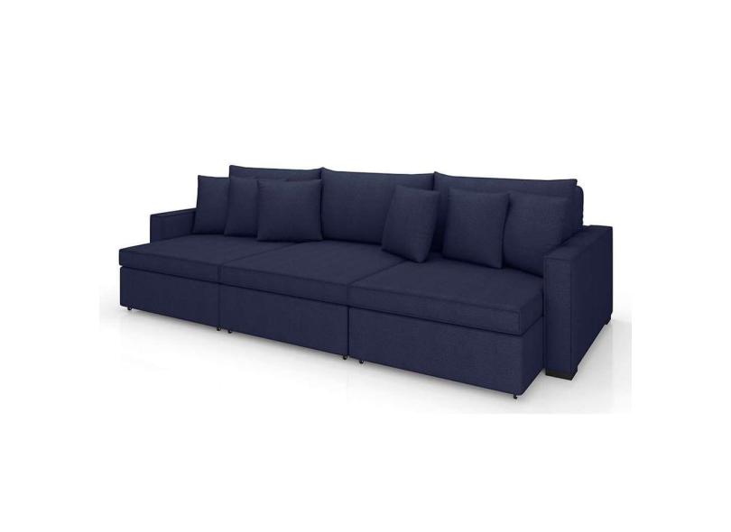 sofá 5 lugares retrátil e reclinável rivera linho bouclé azul 295 cm