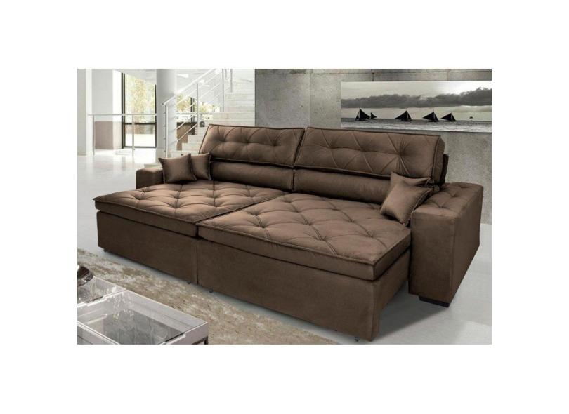 Sofá Austin 2,42m Retrátil, Reclinável com Molas no Assento e Almofadas, Tecido Suede
