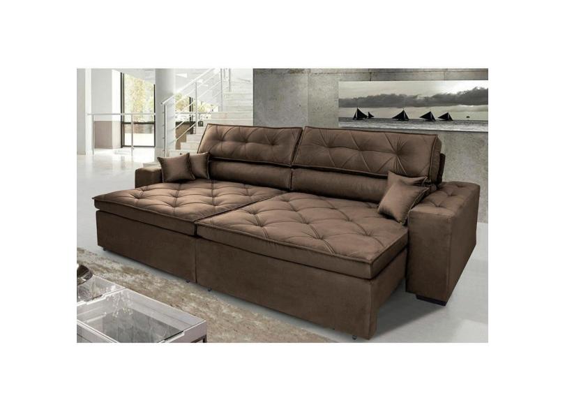 Sofá Austin 2,62m Retrátil, Reclinável Com Molas No Assento E Almofadas, Suede Café Cama Inbox