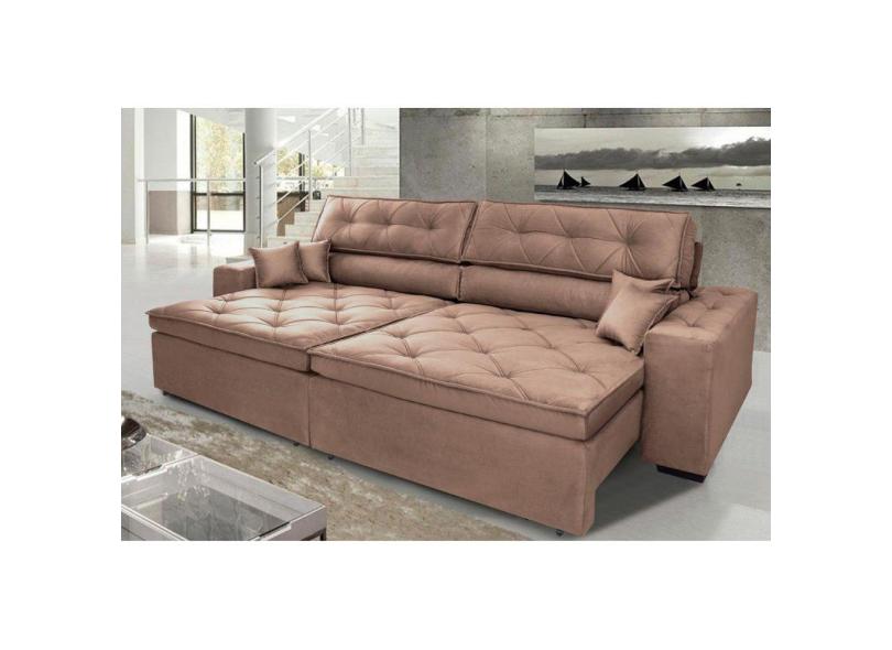 Sofá Austin 2,62m Retrátil, Reclinável com Molas no Assento e Almofadas, Tecido Suede