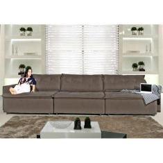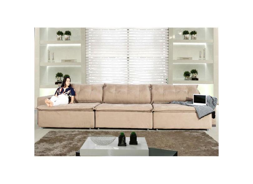 Sofá Austrália 3,82 Mts Retrátil e Reclinavel com Molas no Assento Tecido Suede Pluma - Moveis Marfim