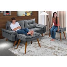 Sofa Bariloche 3 Lugares Com Pes Em Madeira Mais Duas Banquetas Rubi E