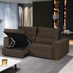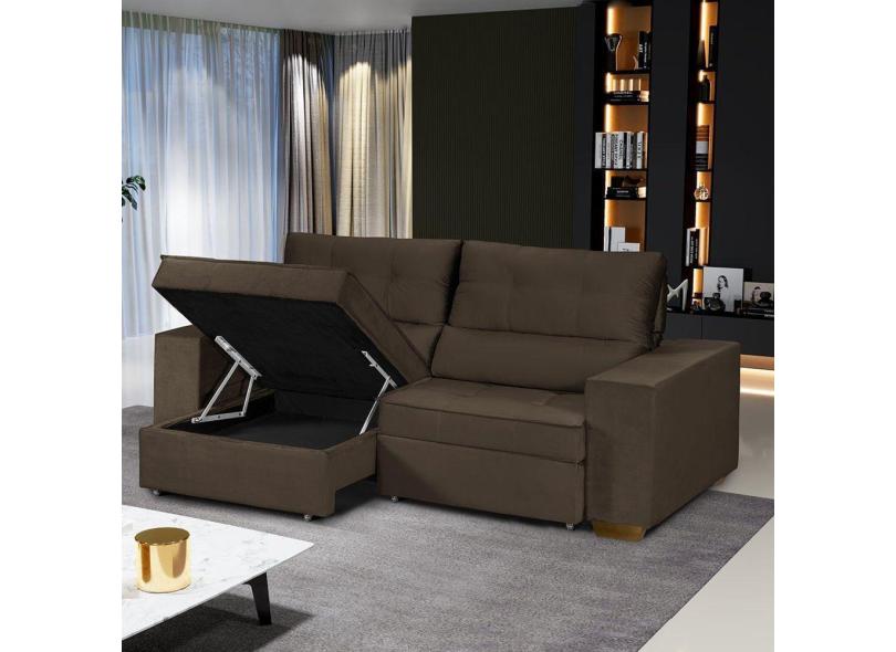 Sofá Baú Retrátil e Reclinável 3 Lugares 190cm Veludo Nobre La Plata Yescasa Marrom