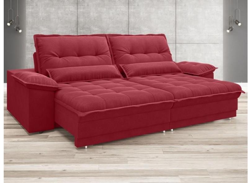 Sofá Bergamo 2,10M Assento Retrátil E Reclinável Velosuede Vermelho - Netsofas