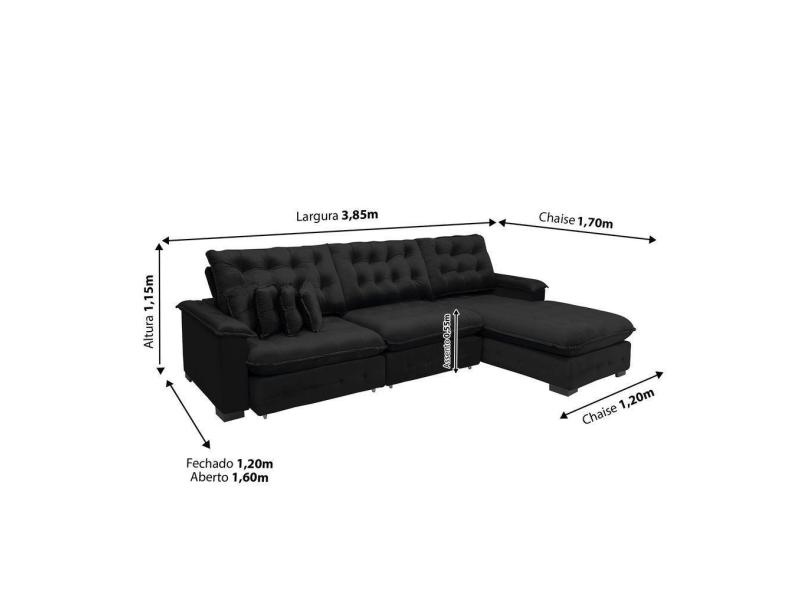 Sofá Berlin 3.85x1.70m Com Chaise Super Pillow Top - Preto