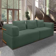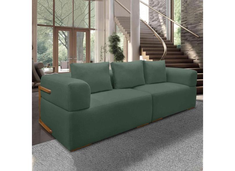Sofá Bipartido 3 Lugares Com Almofadas Soltas 220cm Nuuk Linho Verde