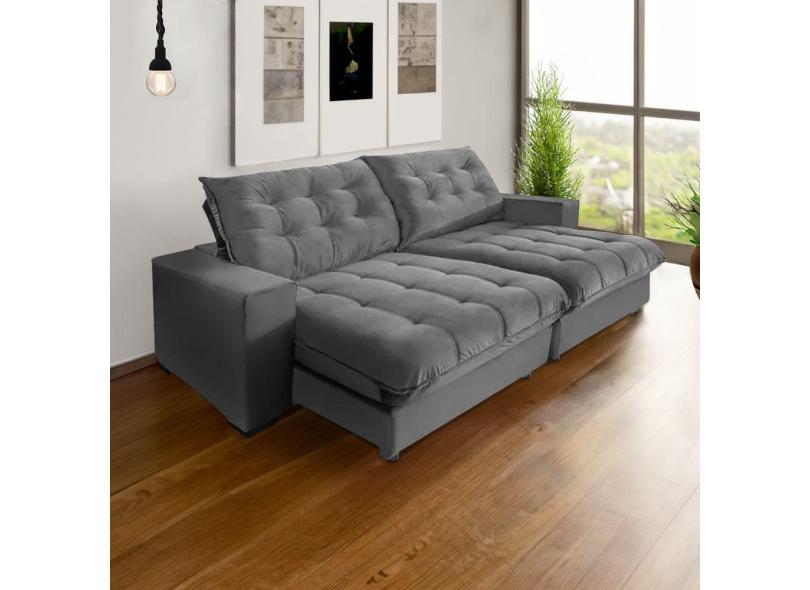 Sofá Califórnia Retrátil e Reclinável 5 Lugares 2,70m com Molas Ensacadas e Pillow Cinza