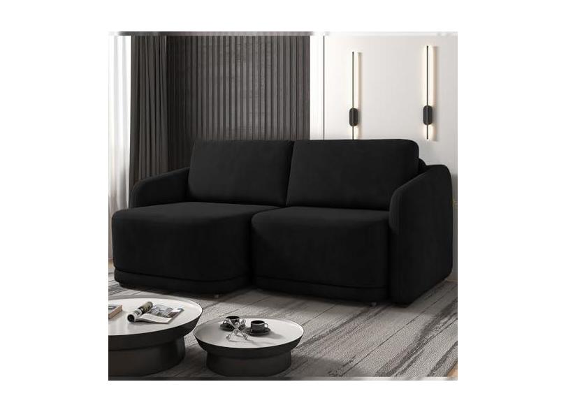 Sofá Cama Modulado Retrátil e Reclinável Decorativo Varsóvia 236cm Veludo Preto G33 - Gran Belo