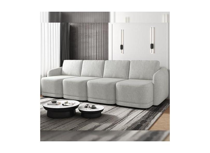 Sofá Cama Modulado Retrátil e Reclinável Decorativo Varsóvia 356cm Linho Cinza G33 - Gran Belo