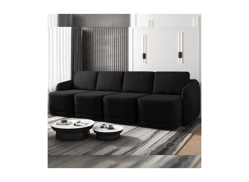 Sofá Cama Modulado Retrátil e Reclinável Decorativo Varsóvia 436cm Veludo Preto G33 - Gran Belo