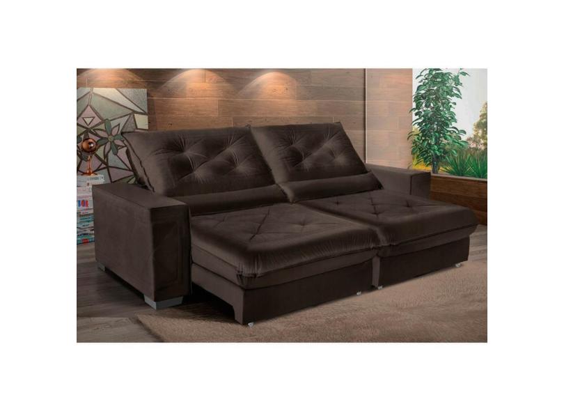 Sofá Cancún Retrátil/Reclinável 2,30m Suede Velusoft café c/molas ensacadas pillow top-Sofá Casa
