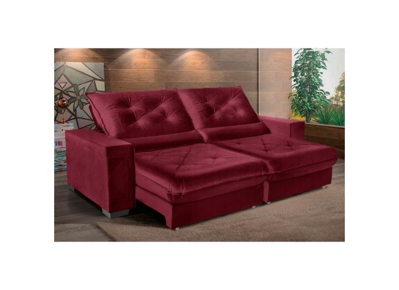 Sofá Cancún Retrátil/Reclinável 2,30m Suede Velusoft vinho c/molas ensacadas pillow top-Sofá Casa