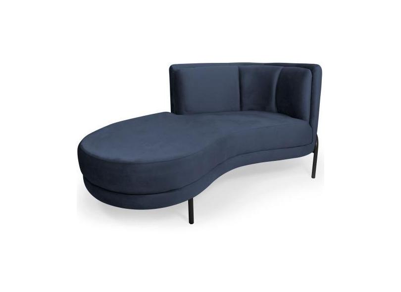 Sofá Chaise Esquerdo Sala De Estar Penélope Base Preto Suede Azul Mari