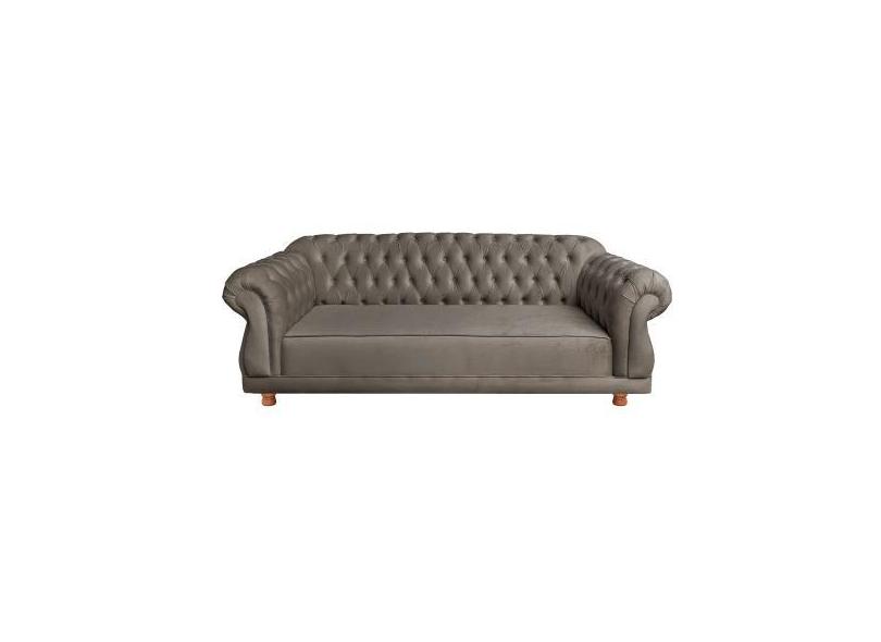 Sofá Chesterfield Capitone Elisabeth Suede Cinza Chumbo 2,00cm - Novo