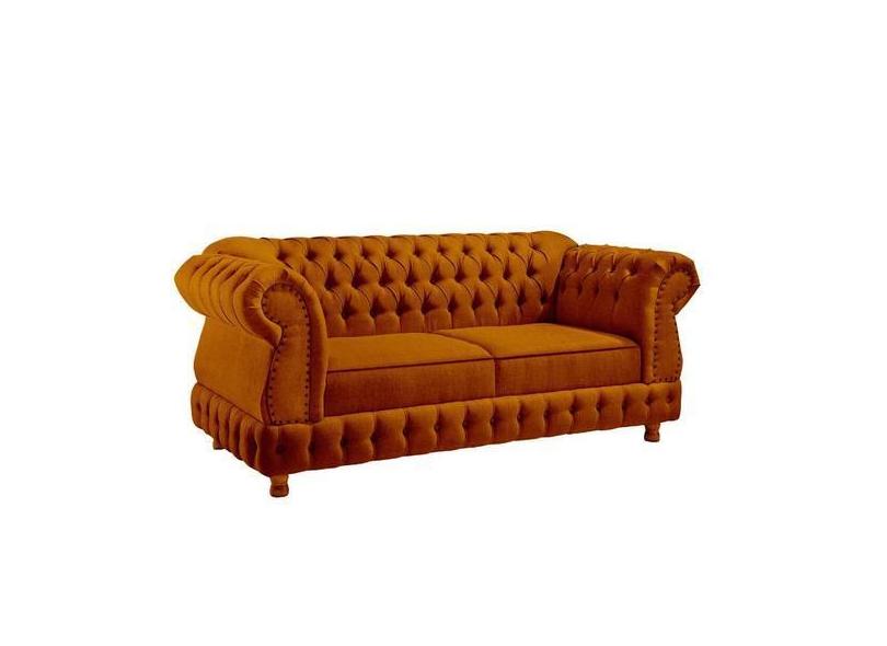Sofá Chesterfield Moscatto 3 Lugares Via Encanto Veludo Cobre
