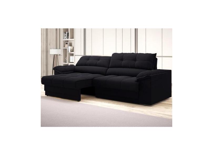 Sofá Com Carregador Usb Retrátil Reclinável Mimo 2,00M Velosuede Preto