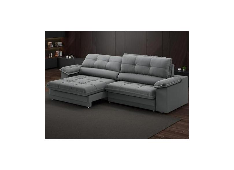 Sofá com Carregador USB Retrátil Reclinável Monaco 2,50m Velosuede Gra