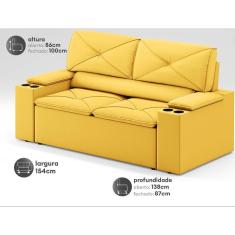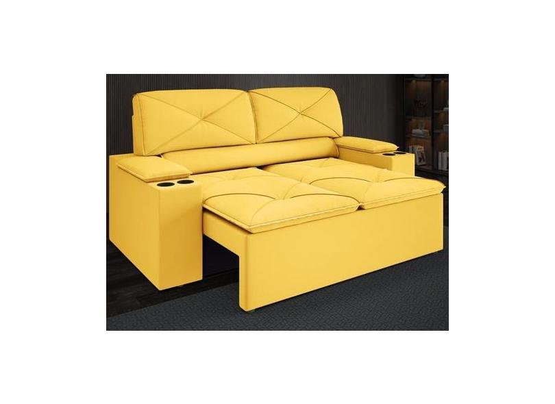 Sofá com Porta Copos Retrátil e Reclinável Pop 1,54m Velosuede Canario