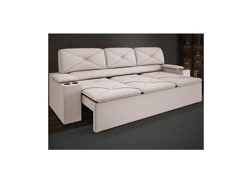 Sofá com Porta Copos Retrátil e Reclinável Pop 2,05m Velosuede Areia -