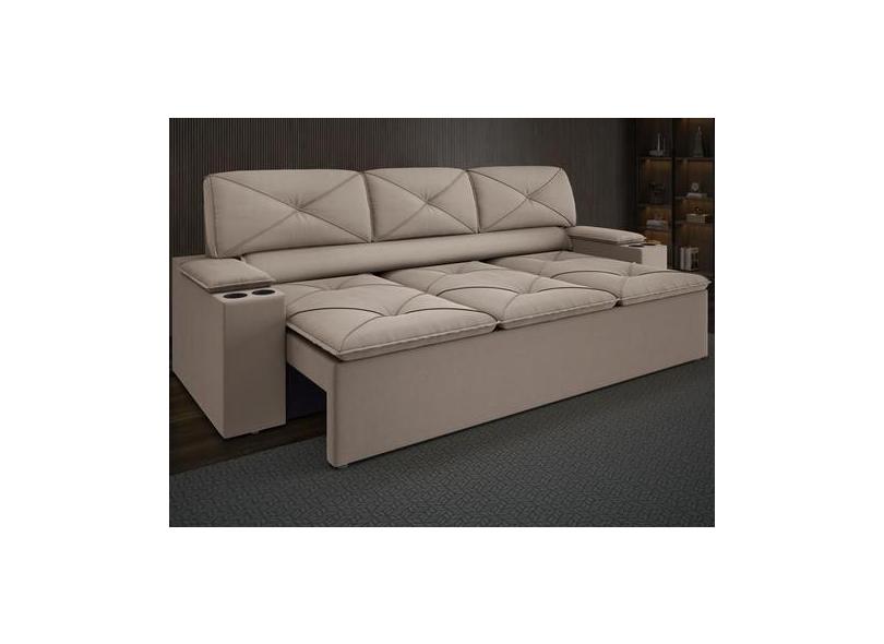 Sofá com Porta Copos Retrátil e Reclinável Pop 2,05m Velosuede Capucci