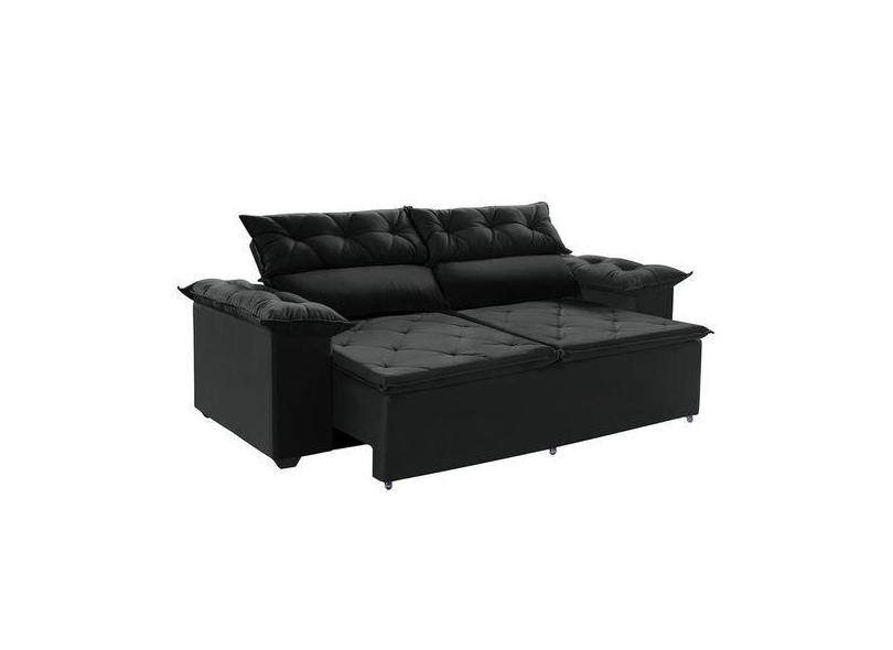 Sofá Compact 150 cm Retrátil e Reclinável com Molas Espirais Preto - S