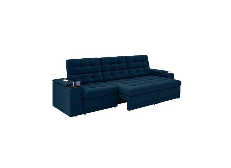 O menor preço encontrado no Brasil para Sofá Confort Premium 2,30m Assento Retrátil/Reclinável porta copos e USB Suede Azul - XFlex Sofas atualmente é R$ 2.099,90.