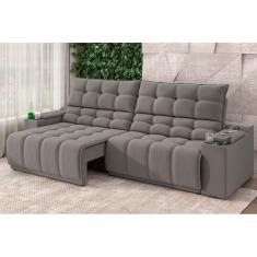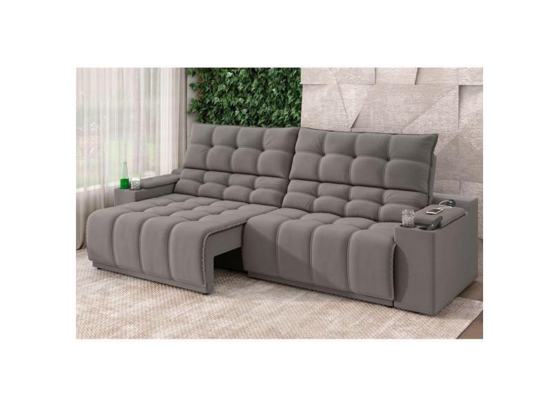 Sofá Connect Premium 2,00m Assento Retrátil/Reclinável com porta copos e entrada USB Suede Cinza - XFlex Sofás