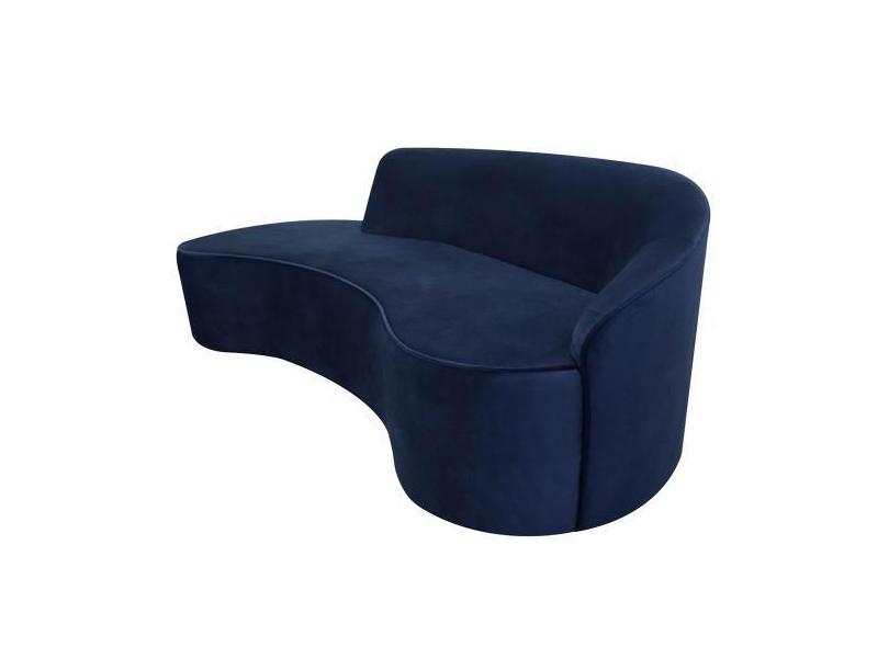 Sofá Curvo 03 Lugares 180cm Eron Braço Esquerdo Veludo Azul Marinho -