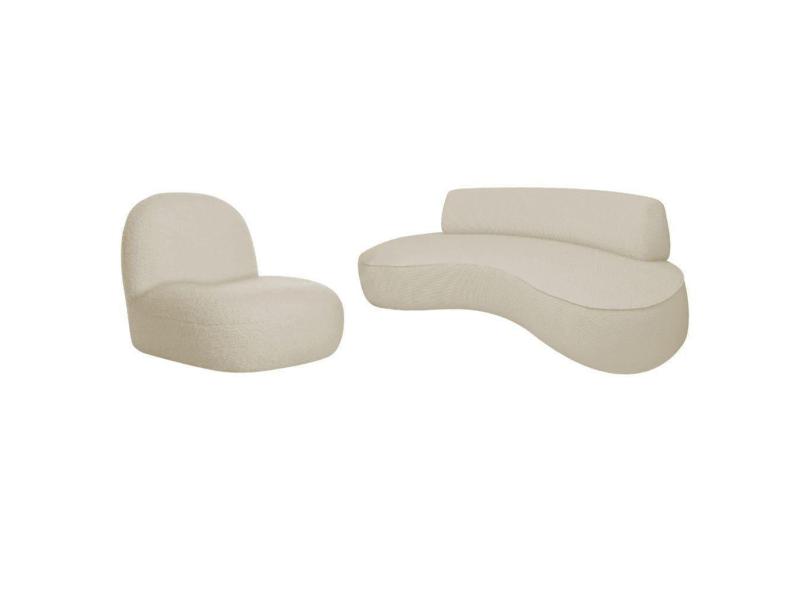 Sofá Curvo 140cm 2 Lugares E 1 Poltrona Amsterdã Bouclé - Doce Sonho Móveis Cor Bege