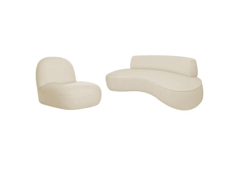 Sofá Curvo 180cm 3 Lugares E 1 Poltrona Amsterdã Linho - Adj Decor Cor Bege