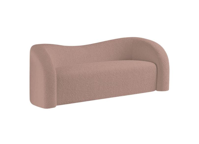 Sofá Curvo 3 Lugares Orgânico Sala Recepção Escritório Coréia 180cm Linho Cor Rosê