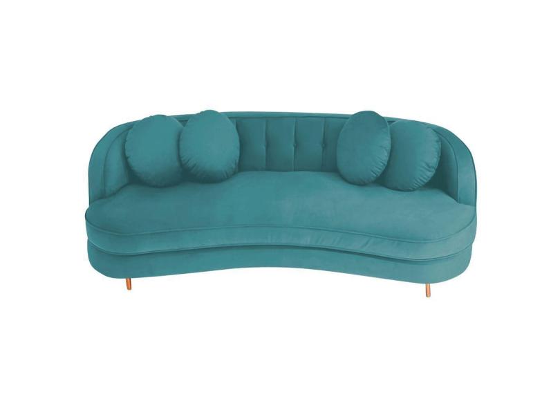 Sofá Curvo 3 Lugares Orgânico Sala Recepção Luxo Panamá 185cm Suede Azul Turquesa