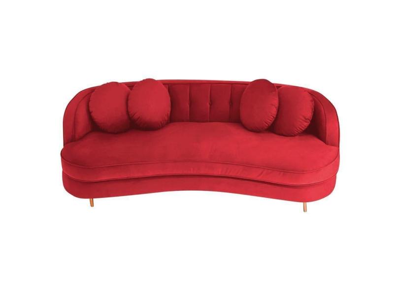 Sofá Curvo 3 Lugares Orgânico Sala Recepção Luxo Panamá 200cm Suede Vermelho