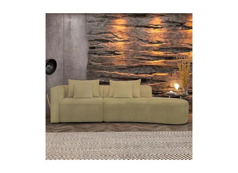 Sofá Curvo Decorativo Kimiko 307Cm 3 Lugares Sala de Estar com Chaise Bouclê Bege G52 - Gran Belo