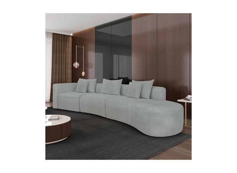 O menor preço encontrado no Brasil para Sofá Curvo Decorativo Kimiko 437Cm 5 Lugares Sala de Estar com Chaise Bouclê Cinza G52 - Gran Belo atualmente é R$ 4.248,31.