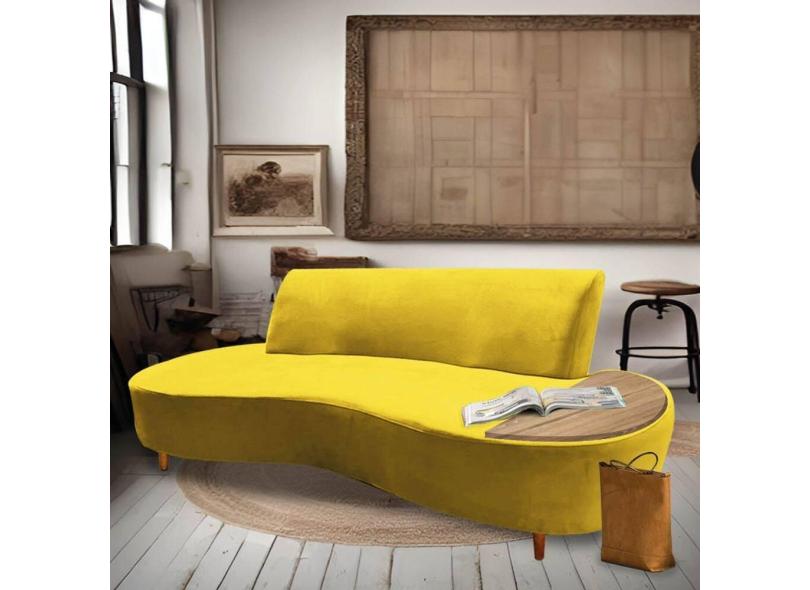 Sofá Curvo Living Premium 3 Lugares Corino Amarelo Com Apoio Lateral MDF Castanho - Ahazzo Móveis