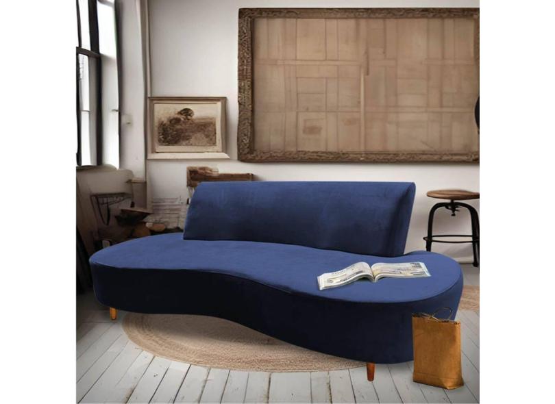 Sofá Curvo Living Premium 3 Lugares Para Sala Quarto Escritório Corino Azul Marinho - Ahazzo Móveis