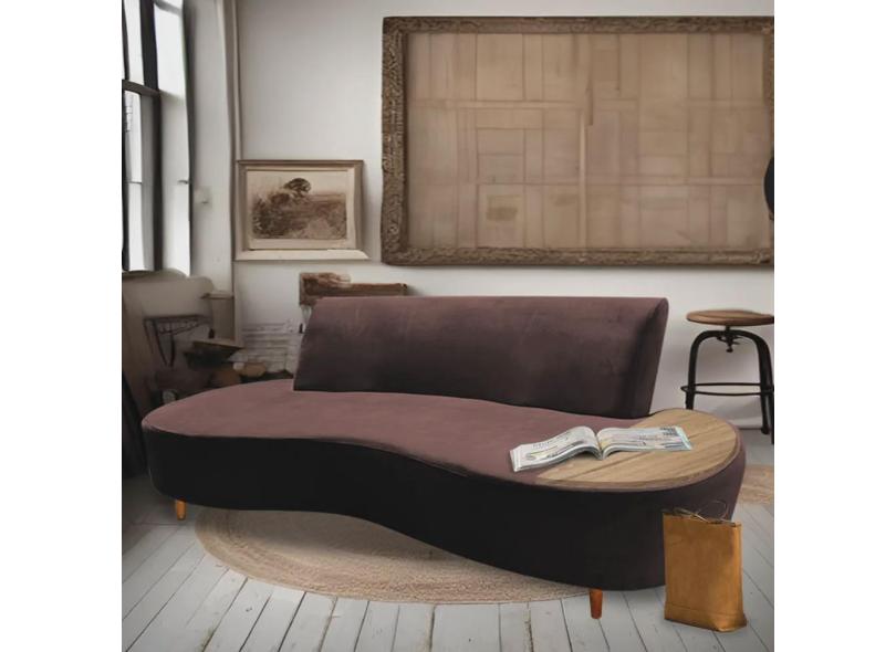 Sofá Curvo Living Premium 3 Lugares Sintético Marrom Com Apoio Lateral mdf Rústico - Ahazzo Móveis