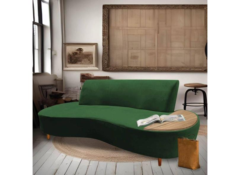 Sofá Curvo Living Premium 3 Lugares Suede Verde Musgo Com Apoio Lateral MDF Rústico - Ahazzo Móveis