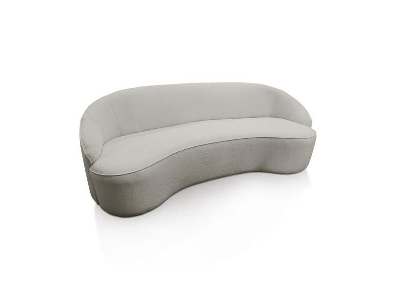Sofá Curvo Montserrat 180cm 03 Lugares Linho Bege Acinzentado- CasaePo