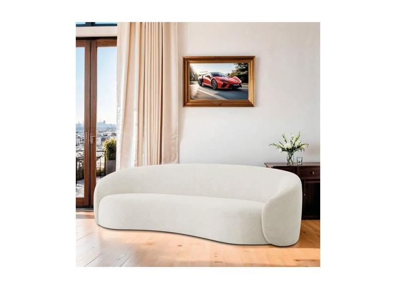 Sofá Curvo Orgânico Sala Recepção 3 Lugares Alemanha 180cm Bouclé Bran