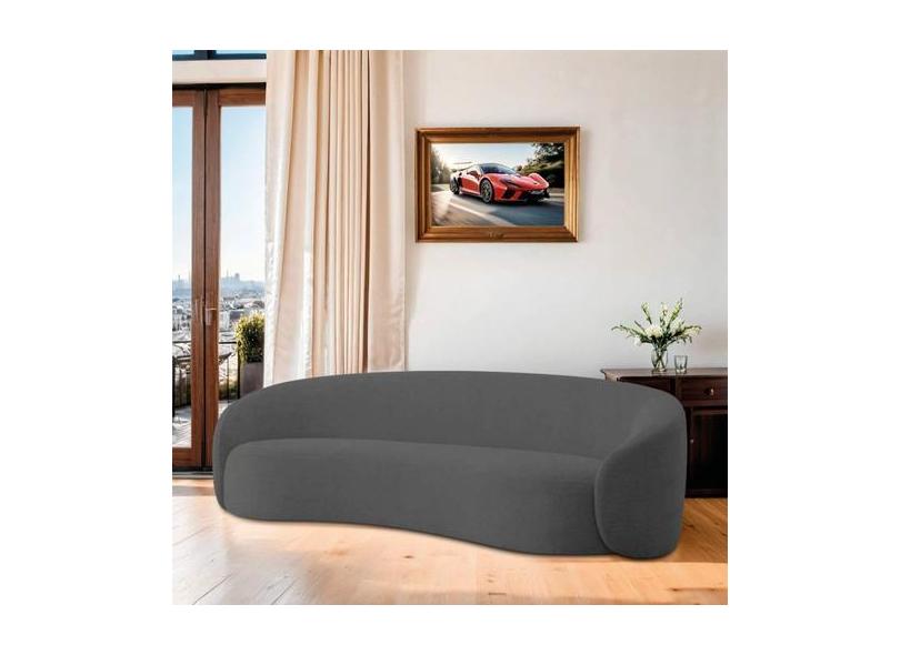 Sofá Curvo Orgânico Sala Recepção 3 Lugares Alemanha 180cm Linho Cinza