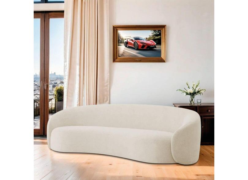 Sofá Curvo Orgânico Sala Recepção 3 Lugares Alemanha 200cm Bouclé Bege
