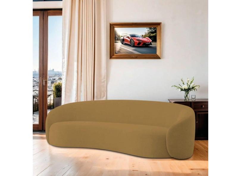 Sofá Curvo Orgânico Sala Recepção 3 Lugares Alemanha 200cm Bouclé Caramelo