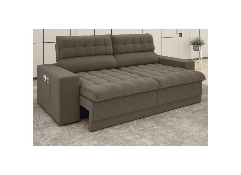 Sofá Daytona 2,00m Assento Retrátil e Reclinável Velosuede Marrom - netsofas