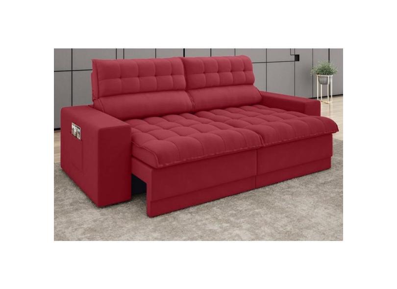 Sofá Daytona 2,00m Assento Retrátil e Reclinável Velosuede Vermelho - netsofas