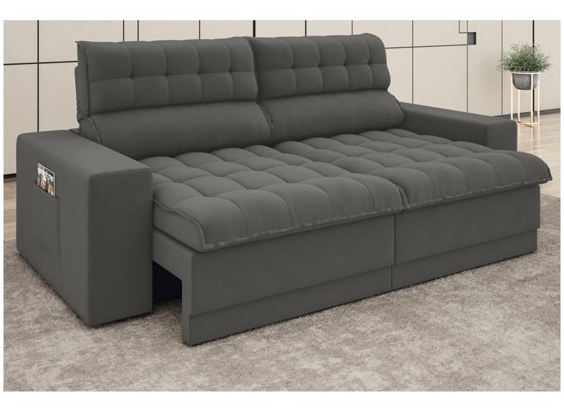 Sofá Daytona 2,30M Assento Retrátil E Reclinável Velosuede Cinza - Netsofas