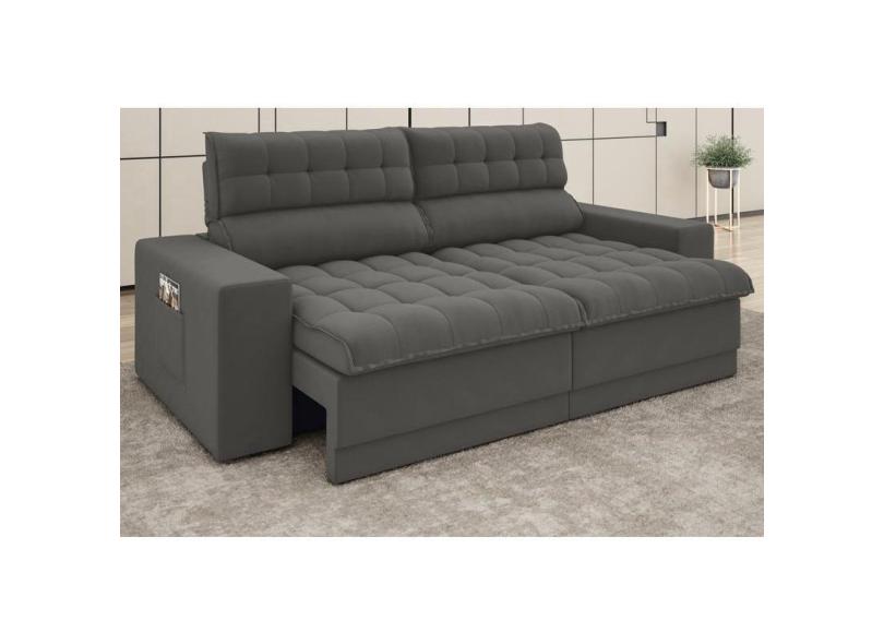 Sofá Daytona 2,50m Assento Retrátil e Reclinável Velosuede Cinza - netsofas